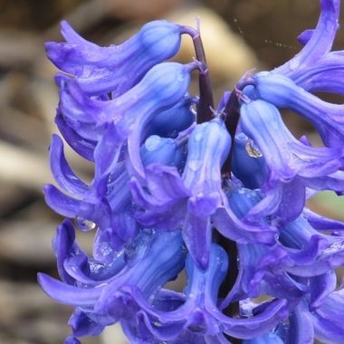 The light that day was gray as the sun hid behind the clouds and it was drizzling a very fine rain. You can see water droplets hanging precariously from the blue-bell’s petals as well as an almost imperceptible, wet strand of a spider’s web at the top.