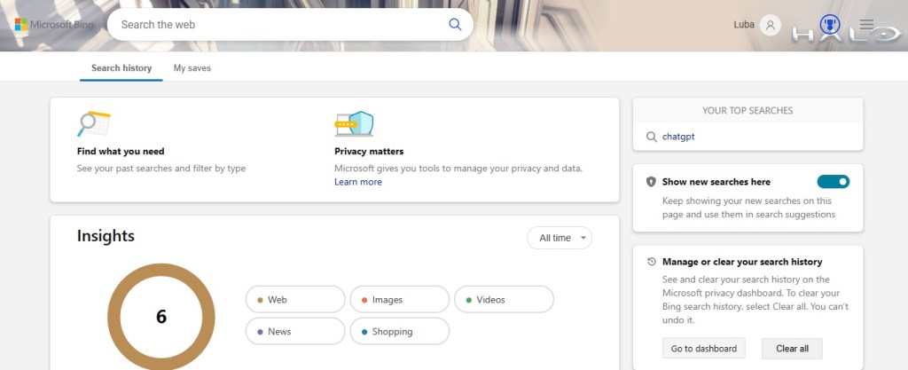 On this page you’ll get insights about your searches as well as be able to manage or clear your search history. Clicking on the back arrow at the top left-hand corner of my browser brought me right back to ChatGPT.
