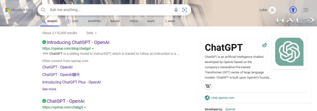 Now that you’re signed in to your Microsoft account and are using Edge, use Microsoft Bing (a web search engine) to search for ChatGPT. You don’t really need to start this way, but I wanted you to see some of the results that come up when doing so. You’ll get a screen that looks something like this: